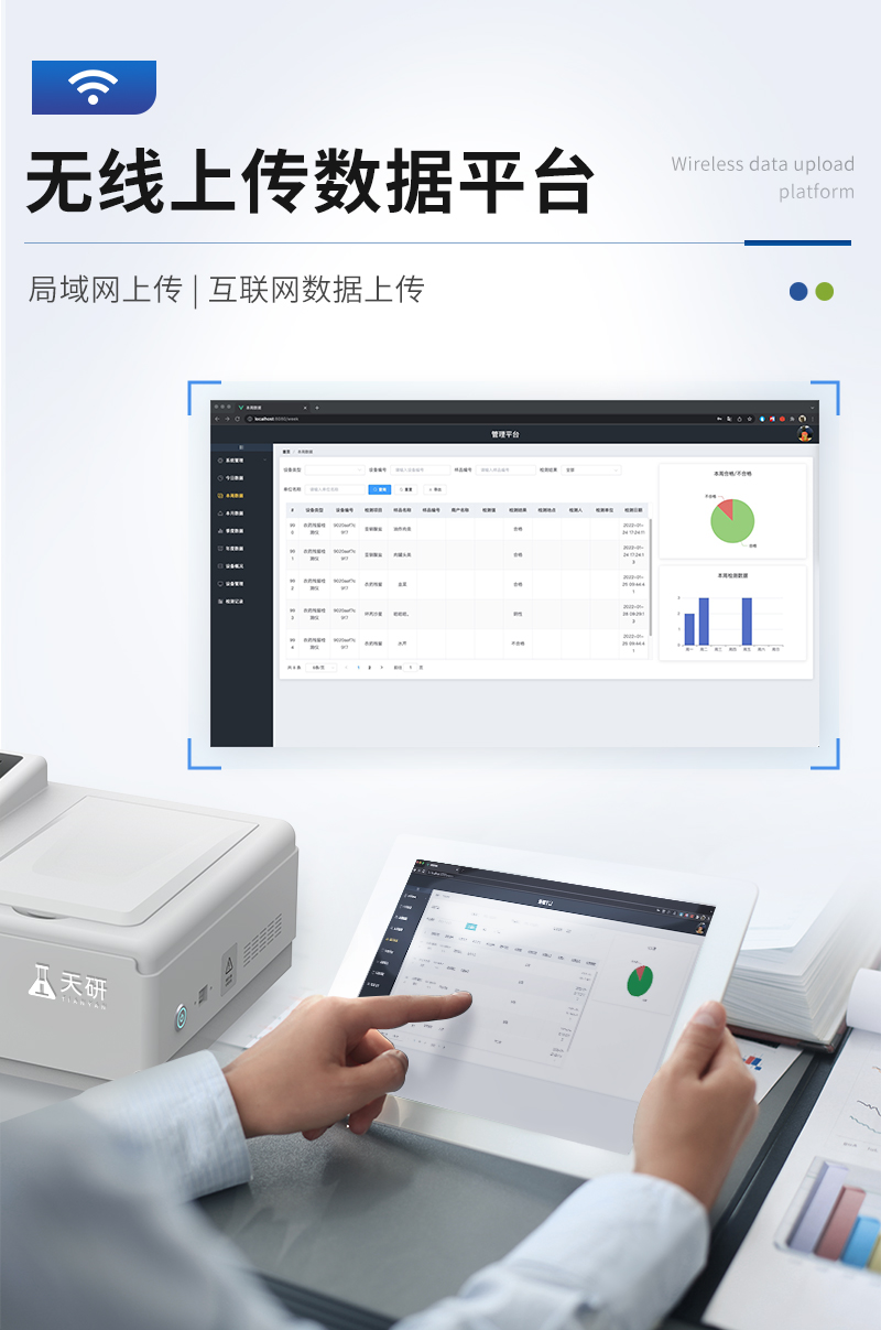 | 儀器采用臺(tái)式一體化系統(tǒng)檢測(cè)技術(shù),將分光光度模塊、數(shù)字化管理模塊、無線通訊模塊高度集成于一體,可支持檢測(cè)60種食品安全檢測(cè)項(xiàng)目,同時(shí)預(yù)留升級(jí)檢測(cè)方法。 | 儀器檢測(cè)模塊標(biāo)準(zhǔn)化、智能化,檢測(cè)項(xiàng)目可隨意自由組合。檢測(cè)箱體內(nèi)置多個(gè)標(biāo)準(zhǔn)檢測(cè)單元,檢測(cè)模塊可以調(diào)整配置。 | 儀器采用全新安卓智能系統(tǒng),主控芯片采用 ARM Cortex-A7,RK3288/4核處理器,10.1寸高清液晶觸摸豎屏,更加**的UI交互界面,運(yùn)轉(zhuǎn)快捷;儀器配備無線通信模塊: 4G(APN)通訊模塊、Wifi模塊,藍(lán)牙傳輸,同時(shí)具有雙USB接口以及RJ45接口能以多種方式實(shí)現(xiàn)數(shù)據(jù)保存和數(shù)據(jù)傳輸功能。 | 顯示屏幕:儀器采用10.1英寸豎向液晶觸摸屏顯,搭配運(yùn)行安卓智能操作系統(tǒng),主控芯片采用ARM Cortex-A7,RK3288/4核處理器,主頻1.88Ghz,操作方便,性能更強(qiáng)。 | 檢測(cè)通道:≥12通道;采用精密旋轉(zhuǎn)比色池設(shè)計(jì),使用同芯片同光源校準(zhǔn)精度,解決不同光源之間的誤差值,更加準(zhǔn)確**。(1-12通道間誤差0.1%,**號(hào):ZL202022821055.2) | 儀器光源:高精度進(jìn)口四波長冷光源,每個(gè)通道均配置 410、520、590、630nm 波長光源,標(biāo)配**的光路切換裝置,**光路切換功能可實(shí)現(xiàn)64波長,并且所有檢測(cè)項(xiàng)目可實(shí)現(xiàn)所有通道同時(shí)檢測(cè)。 | 設(shè)備可一鍵校準(zhǔn),自動(dòng)保存校準(zhǔn)數(shù)據(jù),自動(dòng)對(duì)比校驗(yàn),得到精準(zhǔn)光源,采用Android SP存儲(chǔ)數(shù)據(jù),光源數(shù)據(jù)永不丟失,方便每一次使用。 | 通訊接口:配備無線通信模塊、4G(APN)通訊模塊、藍(lán)牙傳輸,同時(shí)具有雙USB接口以及RJ45網(wǎng)線接口,可以多方式實(shí)現(xiàn)數(shù)據(jù)保存及數(shù)據(jù)傳輸。 | 存儲(chǔ)方式:支持U盤存儲(chǔ),標(biāo)準(zhǔn)USB接口,免驅(qū)動(dòng)安裝。檢測(cè)結(jié)果存儲(chǔ)容量20萬條以上,可生成Excel表格進(jìn)行拷貝,并具有登錄保護(hù)功能。 | 智能化操作系統(tǒng): | 1、操作系統(tǒng):儀器可在同一檢測(cè)界面自動(dòng)對(duì)應(yīng)相關(guān)檢測(cè)通道,一次性選擇1-12個(gè)樣品名稱,無需退出界面,節(jié)省操作時(shí)間。并可以對(duì)每個(gè)通道屬性和樣品信息單獨(dú)進(jìn)行編輯,例如送檢單位、人員,檢測(cè)人員等,打印時(shí)勾選打印顯示。 | 2、數(shù)據(jù)集成系統(tǒng):設(shè)備首頁自動(dòng)匯總分析檢測(cè)數(shù)據(jù),包含:周檢測(cè)數(shù)據(jù)、月檢測(cè)數(shù)據(jù),全部檢測(cè)總數(shù)量,均包含檢測(cè)總數(shù),合格數(shù),不合格數(shù),以及相關(guān)柱形分析圖,各項(xiàng)檢測(cè)數(shù)據(jù)一目了然,無需電腦查詢,更加快捷直觀。 | 3、數(shù)據(jù)庫系統(tǒng):十幾項(xiàng)數(shù)據(jù)庫分類管理儀器:包含項(xiàng)目類型、項(xiàng)目數(shù)據(jù)、檢測(cè)數(shù)據(jù)、歷史記錄、國標(biāo)信息、曲線信息、采樣信息、檢測(cè)信息、受檢信息、復(fù)核信息、圖表信息、光源校準(zhǔn)信息、打印樣式信息、樣品庫信息等等,數(shù)據(jù)庫之間互相協(xié)調(diào)聯(lián)動(dòng)保證數(shù)據(jù)的真實(shí)完整性。同時(shí)產(chǎn)品數(shù)據(jù)庫以及歷史檢測(cè)記錄支持一鍵檢索功能。 | 4、限量規(guī)判系統(tǒng):具有限量查詢、添加物質(zhì)合規(guī)判定系統(tǒng)。檢測(cè)出結(jié)果后,系統(tǒng)自動(dòng)調(diào)用系統(tǒng)數(shù)據(jù)庫中相關(guān)國標(biāo)進(jìn)行比對(duì)判定,客觀顯示判定結(jié)果是否合格。 | 5、項(xiàng)目預(yù)設(shè)系統(tǒng):儀器具有任務(wù)預(yù)設(shè)模塊,一鍵提前預(yù)設(shè),給出方便快捷的新檢測(cè)方案,每一個(gè)任務(wù)分別可以設(shè)置不同的樣品、批次、編號(hào)、來源、備注、抽樣信息、檢測(cè)信息、受檢信息、復(fù)核信息等更多信息。樣品送檢時(shí)一鍵調(diào)取保存信息,并可多次調(diào)取,大大提高檢測(cè)效率。 | 6、數(shù)據(jù)監(jiān)管系統(tǒng):同步對(duì)接監(jiān)管平臺(tái),數(shù)據(jù)可局域網(wǎng)和互聯(lián)網(wǎng)數(shù)據(jù)上傳,檢測(cè)結(jié)果可選擇直接傳至食品安全監(jiān)管平臺(tái)。進(jìn)行區(qū)域食品安全監(jiān)管及大數(shù)據(jù)分析處理與數(shù)據(jù)統(tǒng)計(jì),檢測(cè)區(qū)域食品安全長短期動(dòng)態(tài),達(dá)到食品安全問題預(yù)估、預(yù)警。 | 7、全新打印系統(tǒng):內(nèi)置全新打印機(jī),新創(chuàng)自定義打印方式,可按需靈活勾選控制:二維碼,抽樣信息、檢測(cè)信息,受檢信息、復(fù)核信息、抽樣日期、檢測(cè)日期等信息的打印。 | 8、A4紙版本報(bào)告打印功能(可選配):設(shè)備擁有兩種結(jié)果展示方式,可以自動(dòng)生成A4打印模板和小票打印模板兩種樣式,可通過WiFi及網(wǎng)線等方式鏈接外置打印機(jī)可進(jìn)行打印。 | 供電模式:儀器交直流兩用,直流12V供電,可連接車載電源,可配6ah大容量充電鋰電池,電量可實(shí)時(shí)顯示,方便戶外流動(dòng)測(cè)試。 | 儀器具備遠(yuǎn)程升級(jí)功能,可定向分客戶分儀器更新,開機(jī)后自動(dòng)更