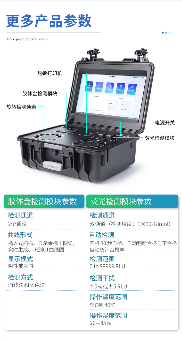 | 儀器采用手提一體化系統(tǒng)檢測技術(shù),將分光光度模塊、膠體金檢測模塊、新型農(nóng)殘檢測模塊、數(shù)字化管理模塊、無線通訊模塊高度集成于一體,支持檢測200種食品安全檢測項目,同時預(yù)留升級檢測方法。 | 儀器檢測模塊標(biāo)準(zhǔn)化、智能化,檢測項目可隨意自由組合。檢測箱體內(nèi)置多個標(biāo)準(zhǔn)檢測單元,檢測模塊可以調(diào)整配置。 | 顯示屏幕:儀器采用10.1英寸豎向液晶觸摸屏顯,搭配運行安卓智能操作系統(tǒng),主控芯片采用ARM Cortex-A7,RK3288/4核處理器,主頻1.88Ghz,操作方便,性能更強。 | 檢測通道:≥12通道;采用精密旋轉(zhuǎn)比色池設(shè)計,使用同芯片同光源校準(zhǔn)精度,解決不同光源之間的誤差值,更加準(zhǔn)確**。(1-12通道間誤差0.1%,**號:ZL202022821055.2) | 儀器光源:高精度進口四波長冷光源,每個通道均配置 410、520、590、630nm 波長光源,標(biāo)配**的光路切換裝置,**光路切換功能可實現(xiàn)64波長,并且所有檢測項目可實現(xiàn)所有通道同時檢測。 | 設(shè)備可一鍵校準(zhǔn),自動保存校準(zhǔn)數(shù)據(jù),自動對比校驗,得到精準(zhǔn)光源,采用Android SP存儲數(shù)據(jù),光源數(shù)據(jù)永不丟失,方便每一次使用。 | 通訊接口:配備無線通信模塊、4G(APN)通訊模塊、藍牙傳輸,同時具有雙USB接口以及RJ45網(wǎng)線接口,可以多方式實現(xiàn)數(shù)據(jù)保存及數(shù)據(jù)傳輸。 | 存儲方式:支持U盤存儲,標(biāo)準(zhǔn)USB接口,免驅(qū)動安裝。檢測結(jié)果存儲容量20萬條以上,可生成Excel表格進行拷貝,并具有登錄保護功能。 | 智能化操作系統(tǒng):: ★操作系統(tǒng):儀器可在同一檢測界面自動對應(yīng)相關(guān)檢測通道,一次性選擇1-12個樣品名稱,無需退出界面,節(jié)省操作時間。并可以對每個通道屬性和樣品信息單獨進行編輯,例如送檢單位、人員,檢測人員等,打印時勾選打印顯示。 | ★數(shù)據(jù)集成系統(tǒng):設(shè)備首頁自動匯總分析檢測數(shù)據(jù),包含:周檢測數(shù)據(jù)、月檢測數(shù)據(jù),全部檢測總數(shù)量,均包含檢測總數(shù),合格數(shù),不合格數(shù),以及相關(guān)柱形分析圖,各項檢測數(shù)據(jù)一目了然,無需電腦查詢,更加快捷直觀。 | ★數(shù)據(jù)庫系統(tǒng):十幾項數(shù)據(jù)庫分類管理儀器:包含項目類型、項目數(shù)據(jù)、檢測數(shù)據(jù)、歷史記錄、國標(biāo)信息、曲線信息、采樣信息、檢測信息、受檢信息、復(fù)核信息、圖表信息、光源校準(zhǔn)信息、打印樣式信息、樣品庫信息等等,數(shù)據(jù)庫之間互相協(xié)調(diào)聯(lián)動保證數(shù)據(jù)的真實完整性。同時產(chǎn)品數(shù)據(jù)庫以及歷史檢測記錄支持一鍵檢索功能。 | ★限量規(guī)判系統(tǒng):具有限量查詢、添加物質(zhì)合規(guī)判定系統(tǒng)。檢測出結(jié)果后,系統(tǒng)自動調(diào)用系統(tǒng)數(shù)據(jù)庫中相關(guān)國標(biāo)進行比對判定,客觀顯示判定結(jié)果是否合格 | ★項目預(yù)設(shè)系統(tǒng):儀器具有任務(wù)預(yù)設(shè)模塊,一鍵提前預(yù)設(shè),給出方便快捷的新檢測方案,每一個任務(wù)分別可以設(shè)置不同的樣品、批次、編號、來源、備注、抽樣信息、檢測信息、受檢信息、復(fù)核信息等更多信息。樣品送檢時一鍵調(diào)取保存信息,并可多次調(diào)取,大大提高檢測效率。 | ★數(shù)據(jù)監(jiān)管系統(tǒng):同步對接監(jiān)管平臺,數(shù)據(jù)可局域網(wǎng)和互聯(lián)網(wǎng)數(shù)據(jù)上傳,檢測結(jié)果可選擇直接傳至食品安全監(jiān)管平臺。進行區(qū)域食品安全監(jiān)管及大數(shù)據(jù)分析處理與數(shù)據(jù)統(tǒng)計,檢測區(qū)域食品安全長短期動態(tài),達到食品安全問題預(yù)估、預(yù)警。 | ★打印系統(tǒng):內(nèi)置全新打印機,新創(chuàng)自定義打印方式,可按需靈活勾選控制:產(chǎn)品合格證(國家農(nóng)業(yè)部標(biāo)準(zhǔn)要求),二維碼,抽樣信息、檢測信息,受檢信息、復(fù)核信息、抽樣日期、檢測日期等信息的打印。 | 供電模式:儀器交直流兩用,直流12V供電,可連接車載電源,可配6ah大容量充電鋰電池,電量可實時顯示,方便戶外流動測試。 | 膠體金檢測模塊:采用雙通道CMOS成像處理技術(shù)及膠體金免疫層析技術(shù),可同時讀取雙膠體金卡數(shù)據(jù),自動采集、處理分析,將檢測結(jié)果顯示,并可根據(jù)參考限值自動判斷檢測結(jié)果,可檢測常見的獸藥殘留、生物毒素、抗生素、違禁添加物等。 | ★探測技術(shù):CMOS成像探測; | ★檢測通道:1個通道; | ★檢測方式:消線法和比色法; | ★顯示模式:陰性或陽性; | 曲線形式:軌道式掃描方式,顯示金標(biāo)卡圖像,實時生成、識別CT曲線圖,無需手動調(diào)整,完成檢測后自動退出檢測卡。兼容市場上其他金標(biāo)卡,使用耗材不受限制。 | 儀器具備遠程升級功能,可定向分客戶分儀器更新,開機后自動更新,并可持續(xù)性免費更新系統(tǒng)版本,無需像傳統(tǒng)產(chǎn)品返廠更新,節(jié)省時間及人力成本并避免了物流運輸返廠升級導(dǎo)致設(shè)備損壞的潛在風(fēng)險。 |