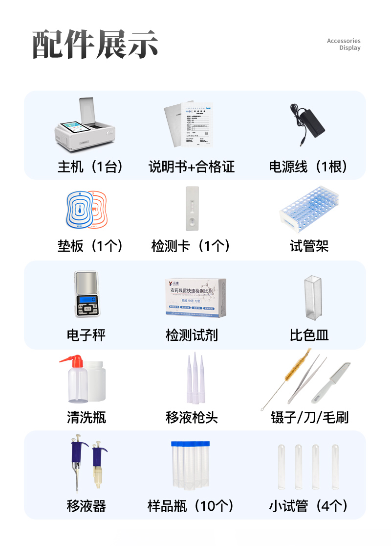 | 儀器采用臺式一體化系統(tǒng)檢測技術(shù),將分光光度模塊、新型農(nóng)殘檢測模塊、數(shù)字化管理模塊、無線通訊模塊高度集成于一體,支持檢測200種食品安全檢測項目,同時預(yù)留升級檢測方法。 | 儀器檢測模塊標(biāo)準(zhǔn)化、智能化,可隨意自由組合。檢測箱體內(nèi)置多個標(biāo)準(zhǔn)檢測單元,檢測模塊可以調(diào)整配置。 | 儀器采用全新安卓智能系統(tǒng),主控芯片采用 ARM Cortex-A7,RK3288/4核處理器,10.1寸高清液晶觸摸豎屏,更加**的UI交互界面,運(yùn)轉(zhuǎn)快捷;儀器配備無線通信模塊: 4G(APN)通訊模塊、Wifi模塊,藍(lán)牙傳輸,同時具有雙USB接口以及RJ45接口能以多種方式實(shí)現(xiàn)數(shù)據(jù)保存和數(shù)據(jù)傳輸功能。 | 創(chuàng)新檢測模式: | ★檢測通道:≥12通道;采用精密旋轉(zhuǎn)比色池設(shè)計,使用同芯片同光源校準(zhǔn)精度,解決不同光源之間的誤差值。1-12通道間誤差0.1%。(**號:ZL202022821055.2) | ★儀器具有自動識別比色皿檢測功能,即:將樣品比色皿放入儀器后,點(diǎn)擊樣品檢測,儀器自動識別比色皿進(jìn)行通道檢測。 | 進(jìn)口高精光源: | 高精度進(jìn)口四波長冷光源,通道配置 410、520、590、630nm 波長光源,一個光源芯片驅(qū)動一個光源,誤差極小,每臺設(shè)備單獨(dú)**校準(zhǔn)光源,**比對,同時參照四種不同波段光源全方位覆蓋市面上99%的農(nóng)殘食品項目檢測。 | 智能化操作系統(tǒng): | 便捷操作系統(tǒng):設(shè)備檢測時可在同一檢測界面自動對應(yīng)相關(guān)檢測通道一次性選擇1-12個樣品名稱,無須退出界面,節(jié)省操作時間。 | 數(shù)據(jù)集成系統(tǒng):設(shè)備首頁自動統(tǒng)計檢測數(shù)據(jù)包含:周檢測數(shù)據(jù)、月檢測數(shù)據(jù),全部檢測總數(shù)量,均包含檢測總數(shù),合格數(shù),不合格數(shù),以及相關(guān)柱形分析圖,對各項檢測數(shù)據(jù)清晰掌握,無需電腦查詢,更加快捷直觀。 | 項目預(yù)設(shè)系統(tǒng):支持添加單個及多個相同或不相同的任務(wù)預(yù)設(shè),一鍵快速調(diào)取,每一個任務(wù)分別可以設(shè)置不同的樣品、批次、編號、來源、備注、抽樣信息、檢測信息、受檢信息、復(fù)核信息等更多信息。無縫鏈接平臺和APP實(shí)時查看下發(fā)任務(wù)。 | 數(shù)據(jù)監(jiān)管系統(tǒng):同步對接監(jiān)管平臺,數(shù)據(jù)可局域網(wǎng)和互聯(lián)網(wǎng)數(shù)據(jù)上傳,檢測結(jié)果可選擇直接傳至食品安全監(jiān)管平臺。集成OSS輸出存儲服務(wù)、區(qū)分設(shè)備定向管理應(yīng)用,進(jìn)行區(qū)域食品安全監(jiān)管及大數(shù)據(jù)分析處理與數(shù)據(jù)統(tǒng)計,檢測區(qū)域食品安全長短期動態(tài),達(dá)到食品安全問題預(yù)估、預(yù)警。 | 自定義打印系統(tǒng):內(nèi)置全新打印系統(tǒng),新創(chuàng)自定義打印方式,可按需靈活設(shè)置開啟或關(guān)閉:產(chǎn)品合格證(國家農(nóng)業(yè)部標(biāo)準(zhǔn)要求),二維碼,抽樣信息、檢測信息,受檢信息、復(fù)核信息、抽樣日期、檢測日期等信息的打印。 | 系統(tǒng)遠(yuǎn)程更新功能:可定向分客戶分儀器更新系統(tǒng),按照不同客戶后期實(shí)際需求添加項目,無需機(jī)器返廠,即可遠(yuǎn)程實(shí)時升級全新系統(tǒng),節(jié)省時間成本及避免運(yùn)輸造成設(shè)備損壞。 | 儀器主機(jī)采用一體化防水、抗壓、防撞擊、防腐蝕箱體設(shè)計,同時配備交直流供電,可連接車載電源,可選配大容量充電鋰電池,滿足現(xiàn)場野外檢測需求。 | 安全證書,放心保障:儀器具有中國計量科學(xué)研究院校準(zhǔn)證書,**認(rèn)證。 |