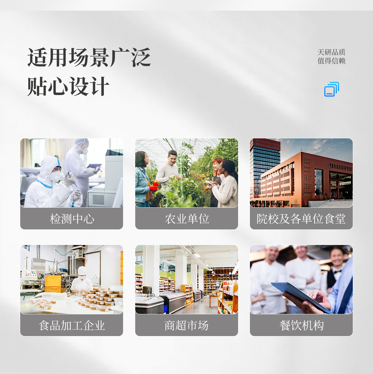 該多功能食品安全檢測儀為集成化食品安全快速檢測分析設(shè)備,廣泛應(yīng)用于市場監(jiān)管局、食品肉產(chǎn)品深加工企業(yè)、學(xué)校食堂、衛(wèi)生部門、畜牧部門、屠宰場、檢驗檢疫部門等單位使用。