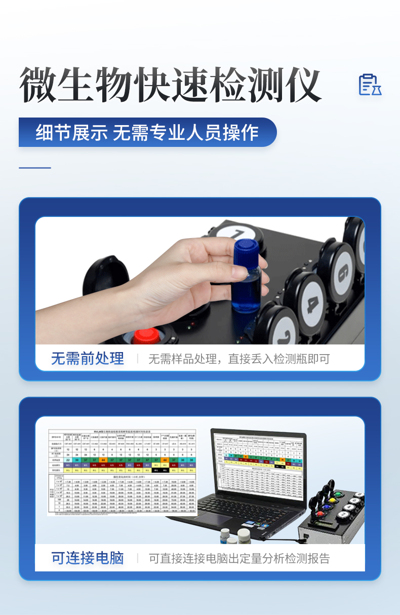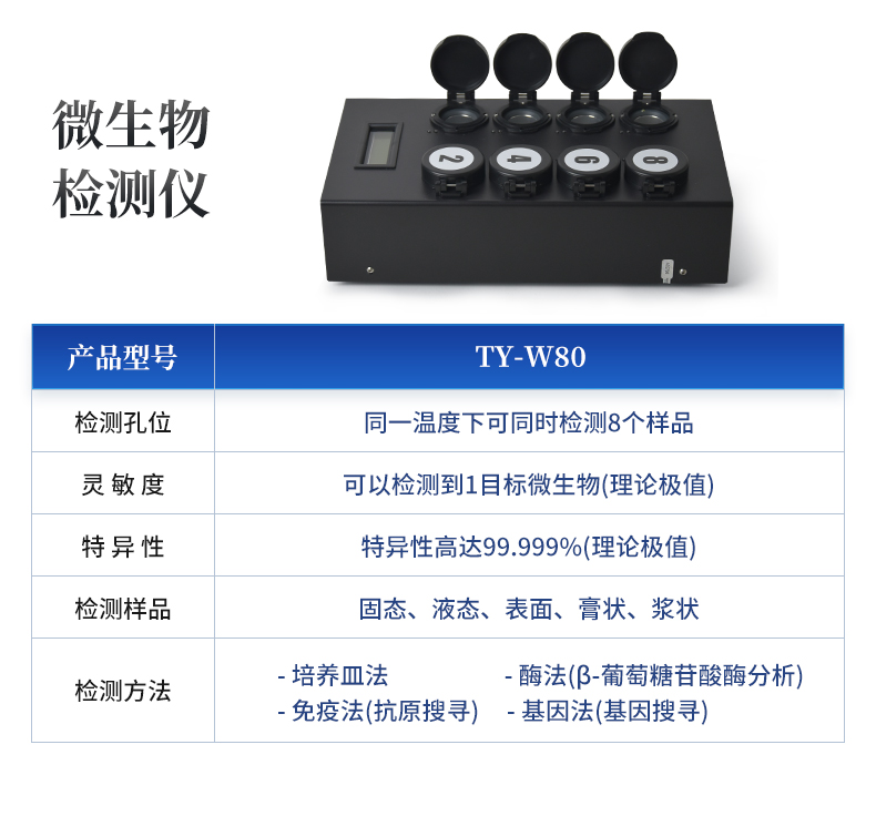 微生物檢測(cè)儀集合培養(yǎng)皿法、酶法(β-葡萄糖苷酸酶分析)、免疫法(抗原搜尋)及基因法(基因搜尋)等技術(shù)的優(yōu)點(diǎn)于一身,檢測(cè)速度較國(guó)標(biāo)法短