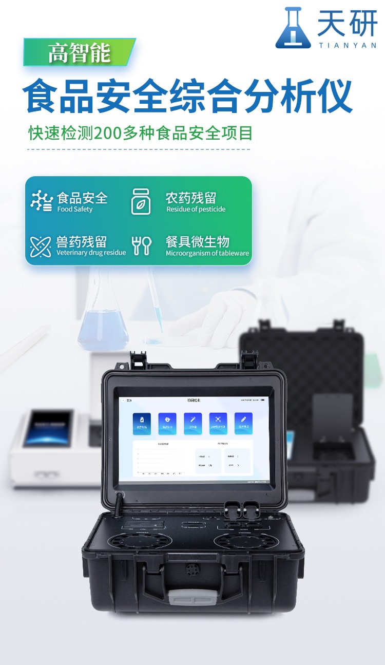 山東天研儀器有限公司生產(chǎn)的食品安全綜合分析儀,采用多功能集成、箱儀一體化設(shè)計,以高強度安全防護箱為載體,內(nèi)部集成多個檢測功能,適用于食藥監(jiān)局、衛(wèi)生部門、高教院校、科研院所、農(nóng)業(yè)農(nóng)村局、食品深加工企業(yè)及檢驗檢疫部門等單位。
