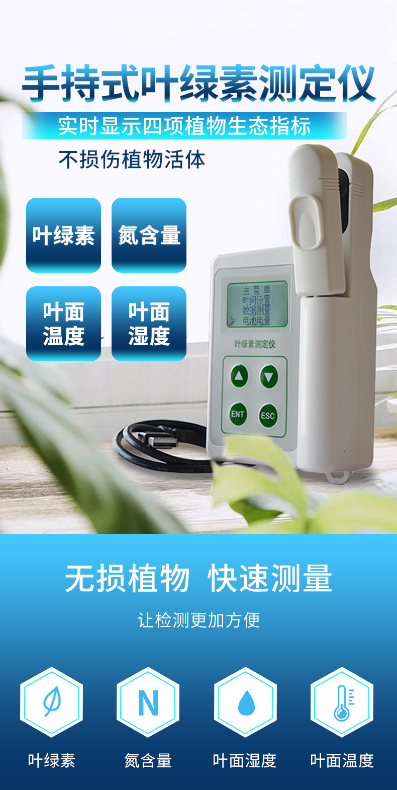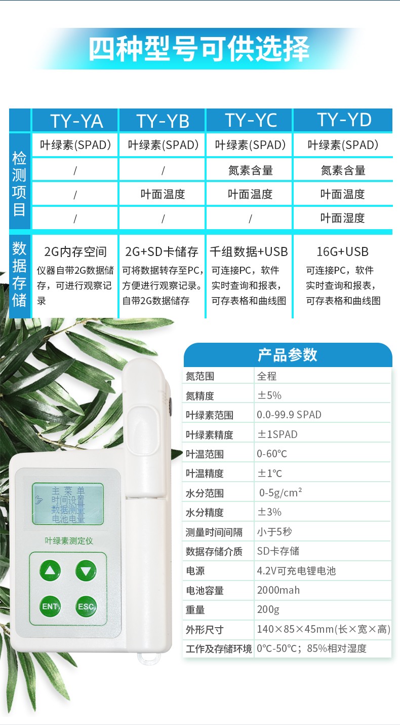TY-YA植物葉綠素儀可以即時測量植物的葉綠素相對含量(單位SPAD)或“綠色程度”從而可以了解植物真實的硝基需求量并且?guī)椭私馔寥老趸娜狈Τ潭然蚴欠襁^多地施加了氮肥。您可以通過這種儀器來增加氮肥的利用率,并可保護環(huán)境(防止施加過多的氮肥而使環(huán)境特別是水源受到污染)。