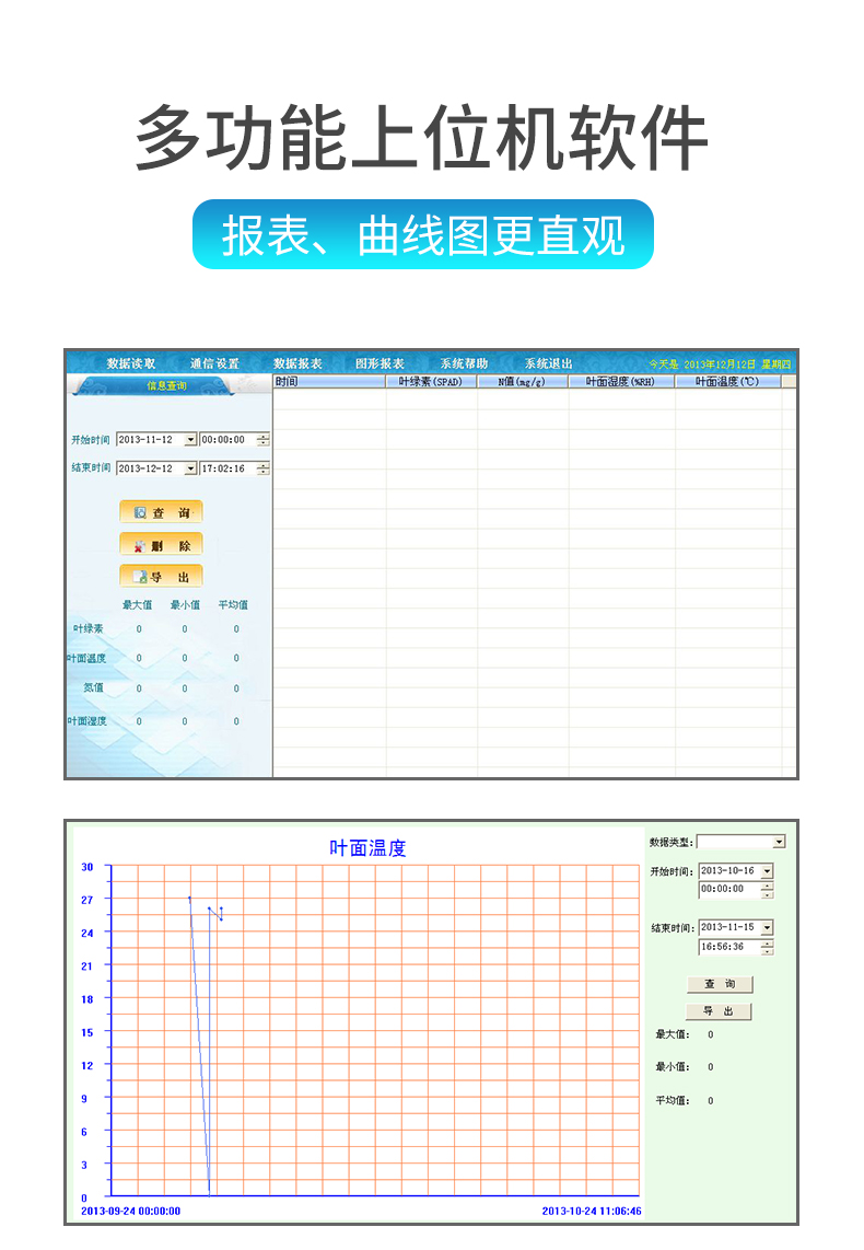 | 數(shù)據(jù)測(cè)量:**的測(cè)量精度和重復(fù)性(精度:± 1.0 SPAD,重復(fù)性:±0.3 SPAD) ,媲美進(jìn)口品牌,或可根據(jù)已知葉綠素含量的葉片或標(biāo)準(zhǔn)試樣客戶自行校準(zhǔn) | 數(shù)據(jù)分組:儀器可將數(shù)據(jù)自動(dòng)分組,并可自動(dòng)計(jì)算每組數(shù)據(jù)的平均值。可將同一葉片測(cè)量的數(shù)據(jù)自動(dòng)分為一組,便于查看每次測(cè)量數(shù)據(jù)及這一組數(shù)據(jù)的平均值,有效的避免了不同葉片的測(cè)量數(shù)據(jù)混淆。采用16GB超大存儲(chǔ),所以分組數(shù)量和每組的數(shù)據(jù)不受限制 | 數(shù)據(jù)存儲(chǔ): 16GB超大存儲(chǔ)空間,數(shù)據(jù)存儲(chǔ)量巨大 | 數(shù)據(jù)瀏覽:可在儀器上隨時(shí)瀏覽測(cè)量的數(shù)據(jù)、每組數(shù)據(jù)的平均值和刪除異常數(shù)值。數(shù)據(jù)情況更加直觀 | 數(shù)據(jù)導(dǎo)出:多功能USB接口,可實(shí)現(xiàn)數(shù)據(jù)導(dǎo)出與充電功能,可將儀器與電腦直接聯(lián)機(jī),數(shù)據(jù)以EXCEL格式導(dǎo)出,無(wú)需上位機(jī)軟件,操作簡(jiǎn)單方便 | 顯示:高對(duì)比度LCD顯示屏,強(qiáng)光下也可清晰顯示數(shù)據(jù) | 測(cè)量迅速、簡(jiǎn)便:測(cè)量時(shí)只需要將葉片插入并合上測(cè)量探頭即可,不需要采摘葉片,不影響作物正常生長(zhǎng),可以在作物的生長(zhǎng)過(guò)程中全程對(duì)特定的葉片進(jìn)行監(jiān)測(cè),從而得到更科學(xué)的分析結(jié)果 | 電池消耗:低功耗模式設(shè)計(jì),內(nèi)置大容量鋰離子充電電池,節(jié)能環(huán)保并方便進(jìn)行戶外操作 | 儀器充電:**的充電管理設(shè)計(jì),可適配多數(shù)的USB口(5V)充電器,具有防過(guò)充功能 | 易攜帶:250g的重量,方便攜帶到田間進(jìn)行活體測(cè)量 |