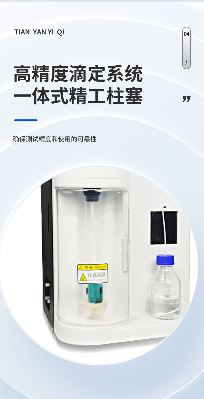 | 1. 采用國家標(biāo)準(zhǔn)的凱氏定氮方法,濃硫酸環(huán)境消解樣品、堿性環(huán)境蒸汽蒸餾、硼酸吸收、指示劑滴定終點(diǎn)顏色判斷法。并參與國家標(biāo)準(zhǔn)GB/T22923-2008、官方JJF109-2012《定氮儀校準(zhǔn)規(guī)范》的起草; | 1. ☆全自動添加試劑、全自動蒸餾滴定、滴定杯全自動排廢清洗、全自動校正、全自動故障檢測、全自動溶液液位監(jiān)測、全自動計算、數(shù)據(jù)存儲、測試報告生成; | 2. 彩色液晶觸摸屏,蒸餾時間與試劑添加通過屏幕設(shè)定,條件可自動保存; | 3. 滴定顏色可自動與手動校準(zhǔn)。滴定終點(diǎn)判定采用高精度的十六位三基色數(shù)字信號顏色傳感器采集顏色信號。 | 4. 2.0μL的高精度滴定系統(tǒng),專業(yè)的一體式精工柱塞。確保測試精度和使用的可靠性。 | 5. 彩色液晶觸摸屏,中英文操作界面可選,實(shí)時監(jiān)測和顯示實(shí)驗(yàn)過程,條件可自動保存; | 6. 可存儲完整的測試數(shù)據(jù)1000組; | 7. 全自動故障檢測和提示:安全門、消化管到位監(jiān)測和提示,試劑液位監(jiān)測和提示,蒸汽爐液位和溫度檢測和提示; | 8. 采用成熟穩(wěn)定的蒸汽發(fā)生器技術(shù),自動預(yù)熱、補(bǔ)水,自動控制蒸汽壓力,自動防干燒,自動清洗; | 9. 自動控制蒸汽壓力在安全范圍之內(nèi),遠(yuǎn)離蒸汽過壓危險; | 10.雙蒸餾模式,手動與自動任意切換; | 11.☆堿泵采用高可靠的聚四氟乙烯風(fēng)箱泵,專用防腐蝕,耐顆粒堵塞,加液穩(wěn)定,負(fù)壓抽吸無危險; | 12.節(jié)水設(shè)計,冷卻水流量1.5L/min, 冷卻水只在蒸餾過程開啟,冷卻水流量實(shí)時監(jiān)控,低水壓報警顯示,停水自動終止運(yùn)行; | 13.貼合氨逸出規(guī)律特殊設(shè)計的蒸餾系統(tǒng),確保高可靠的測試回收率; | 14.消化管周邊設(shè)施智能化設(shè)計,透明亞克力保護(hù)罩,將危險徹底隔離; | 15.蒸汽發(fā)生器具有壓力傳感器、溫度傳感器、溫度保護(hù)開關(guān)、水位雙重檢測等多重保護(hù); | 16.儀器具備自檢功能、具備一鍵重置。 | 17.☆試劑桶液位監(jiān)測,保證實(shí)驗(yàn)過程不出現(xiàn)缺液問題。 | 18.☆高分子材料防濺瓶設(shè)計。 |