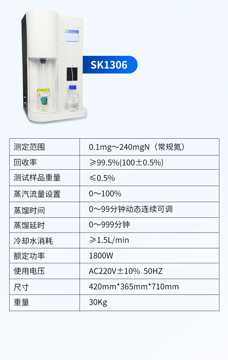 用于檢測食品、藥品、土壤、化工、農(nóng)業(yè)、林業(yè)、材料、環(huán)境監(jiān)測等領(lǐng)域氮含量或蛋白質(zhì)含量測定、陽離子交換量測定。