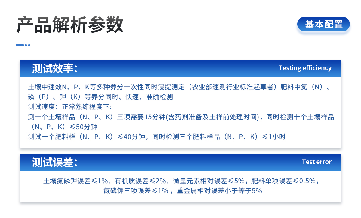 | 土壤氮磷鉀誤差≤1%,有機(jī)質(zhì)誤差≤2%,微量元素相對(duì)誤差≤5%;肥料單項(xiàng)誤差≤0.5%,氮磷鉀三項(xiàng)誤差≤1%。 | 重金屬相對(duì)誤差小于等于5%。 |