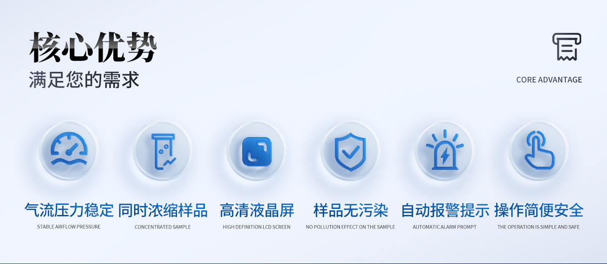 該設(shè)備采用獨(dú)特的濃縮方式大幅提高濃縮速率。同時(shí),設(shè)備利用自帶抽氣風(fēng)扇將蒸發(fā)之廢氣由排氣管路定向排出,使得原本必須置于通風(fēng)廚中的氮吹濃縮裝置可安全的安裝于一般實(shí)驗(yàn)平臺(tái)上。不僅移動(dòng)容易,節(jié)約實(shí)驗(yàn)室成本,而且減輕了有毒有害溶劑對(duì)操作人員的傷害。是實(shí)驗(yàn)室樣品前處理裝置。