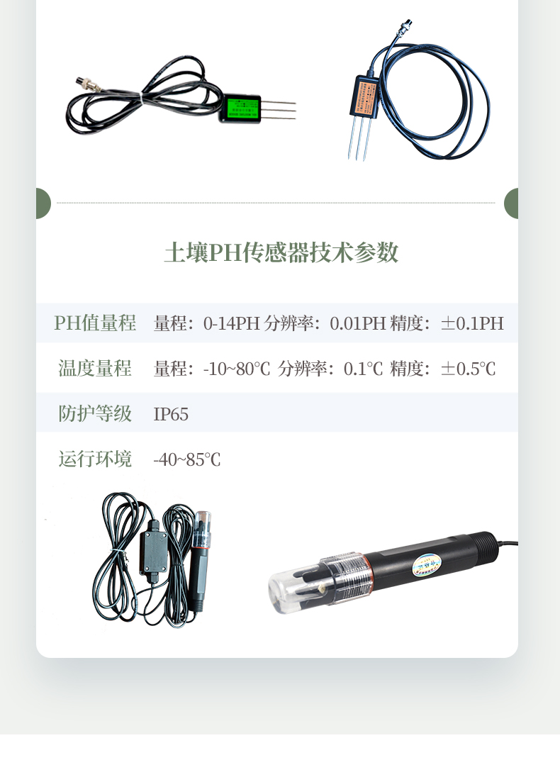 | 測(cè)量參數(shù):土壤容積含水量; 單位:%(m3/m3); 測(cè)試靈敏度:±0.01 %(m3/m3); | 量程:0-100%(m3/m3) 測(cè)量精度:0-50%(m3/m3)范圍內(nèi))±2%(m3/m3); | 50-100%(m3/m3)范圍內(nèi))±3%(m3/m3); 分辨率:0.1% | 土壤溫度范圍:-40-120℃ 測(cè)量精度:±0.2℃ 分辨率:±0.1℃ | 土壤鹽分范圍:0-20ms 測(cè)量精度:±2% 分辨率:±0.1ms | PH測(cè)量范圍:0-14 分辨率:0.1 測(cè)量精度:±0.2% | 集成電極:土壤水分,土壤溫度,土壤鹽分三合一,集成到一個(gè)傳感器; | ph復(fù)合電極:電極為復(fù)合電極,自動(dòng)溫度補(bǔ)償,測(cè)試更穩(wěn)定更準(zhǔn)確。 | 儀器尺寸:10×21×3.5cm | 供電方式:鋰電池供電、交流電兩種方式 | 軟件:上位機(jī)軟件免費(fèi)贈(zèng)送 |
