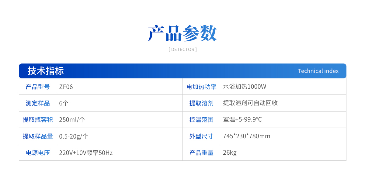 產(chǎn)品介紹:脂肪測(cè)定儀又名索氏提取器,是利用索氏提取技術(shù)研制而成的用于實(shí)驗(yàn)室測(cè)定脂肪含量的一款設(shè)備。 脂肪測(cè)定儀設(shè)計(jì)合理、性能穩(wěn)定、**度高、操作省力、省時(shí),提取方法符合國(guó)家(GB5512-85), (GB/T 14772-2008),(GB/T 6433-2006), (SN/T 0800.2-1999),其他標(biāo)準(zhǔn),各項(xiàng)指標(biāo)及性能都達(dá)進(jìn)口同類產(chǎn)品的要求。該儀器是食品